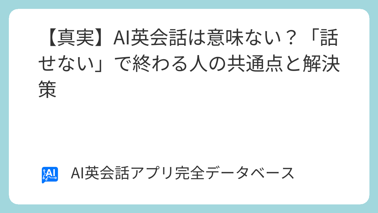 【真実】AI英会話は意味ない?「話せない」で終わる人の共通点と解決策