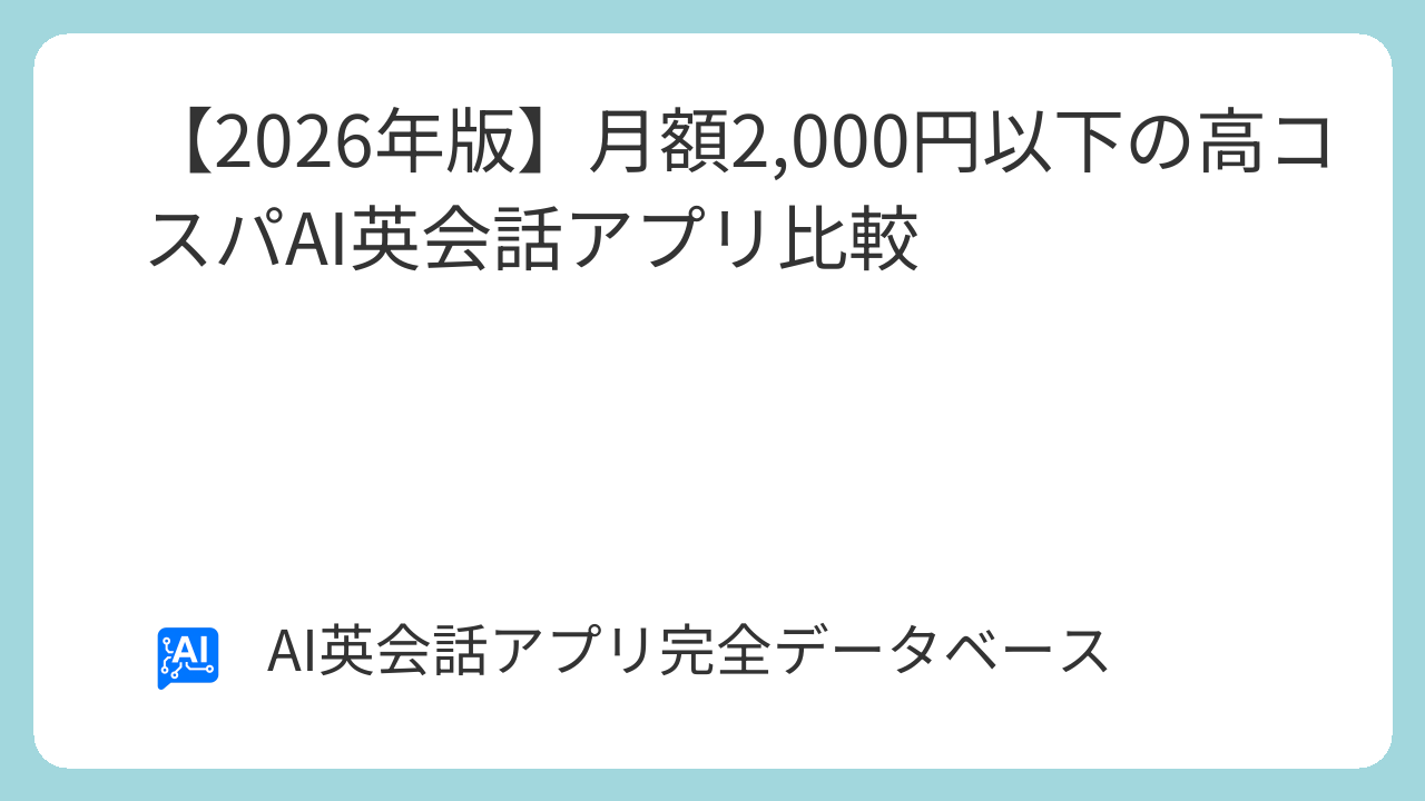 本記事では、AI英語学習研究所が厳選した「月額2,000円以下」でスタートできる高コスパAI英会話アプリを徹底比較します。